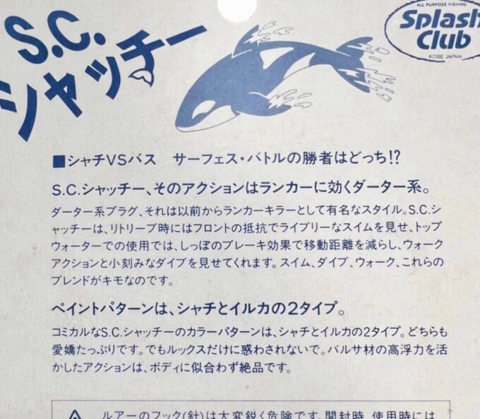 もともと『S.C.シャッチー』は、武蔵小山の(現在は河口湖町に移転)トップウォータールアー専門店「バスポンド」店主、松井友宏氏の私的なハンドメイドルアーであった。